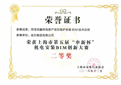 2018年12月,上海市第五届“申新杯”BIM机电安装BIM创新大赛结果出炉,重庆鸿尚宇不锈钢有限公司参赛作品《菏泽润鑫热电联产项目锅炉安装BIM技术应用》斩获BIM创新大赛二等奖。