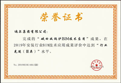 公司又一项BIM成果在2019年安装行业BIM技术应用成果评价活动中获评“行业先进”