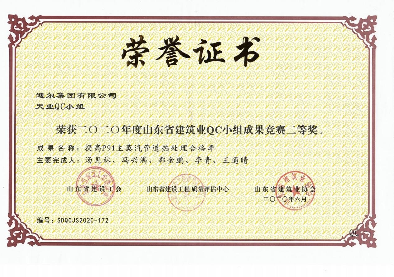 2020年公司荣获山东省建筑业QC小组成果竞赛二等奖