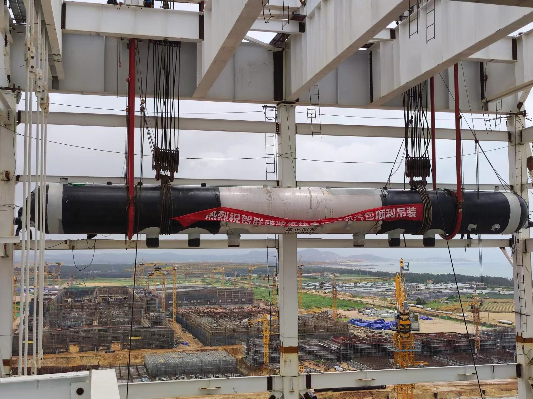 联盛浆纸热电联产项目1#锅炉汽包吊装就位
