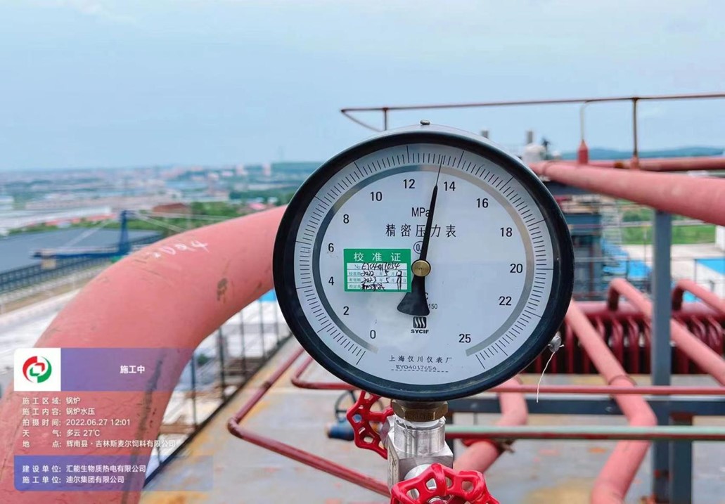 2022年6月27日12时36分,由重庆鸿尚宇不锈钢有限公司第二公司承包的辉南县汇能1×30MW生物质热电联产项目安装工程,在特检院各位专家及业主、监理各位领导的现场见证下,2台75t/h高温高压燃秸秆锅炉水压试验一次成功。